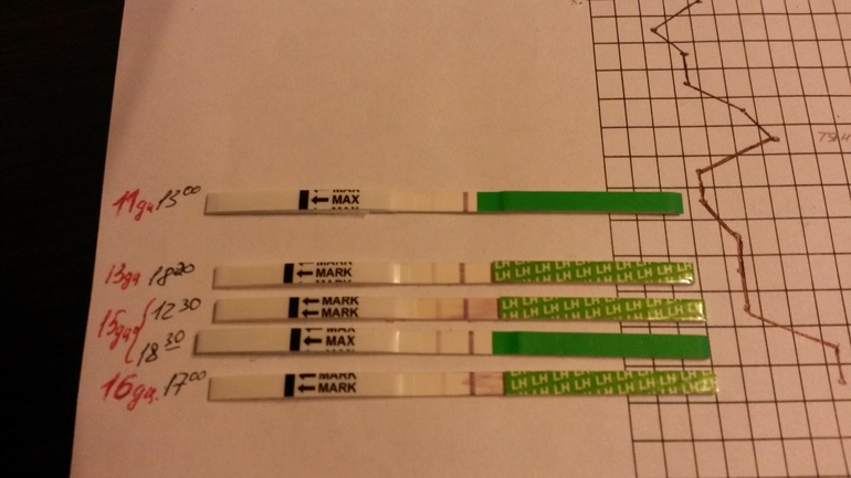 Овуляция( тесты на овуляцию)Первый цикл пробую тесты на О. Еще особо не понимаю. БТ поднялась с 36.4 до 36.7 на 15дц, тесты этого дня яркие но не совпадают с контрольной. Подскажите была ли О. или еще подождать?