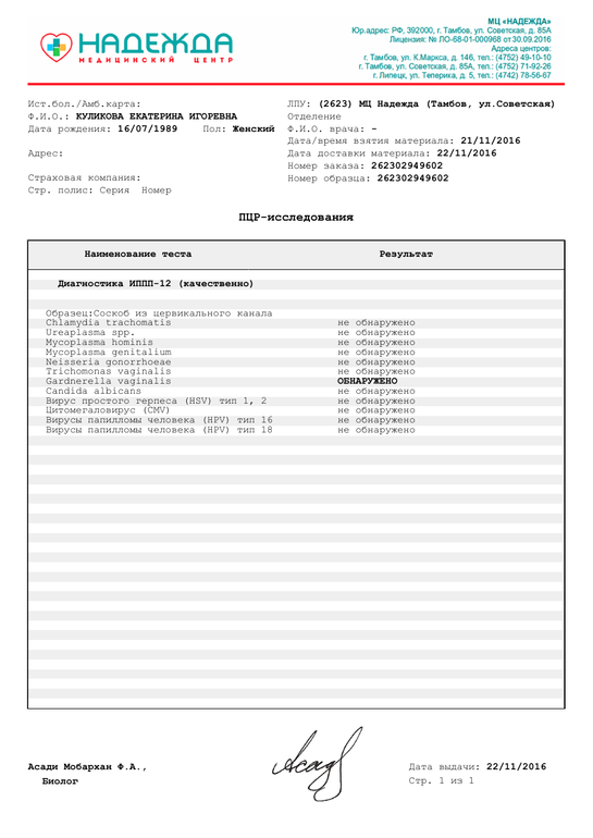У вас качественный анализ (я так понимаю методом ПЦР сдавали). Гарданела это не ЗППП, а условно-патогенная флора. Т.е. она может быть на слизисты и это не страшно, так же как у нас есть различные коки в составе флоры. Условно-патогенные они потому, что опасны только если их много и они преобладают над количеством лактобацил.