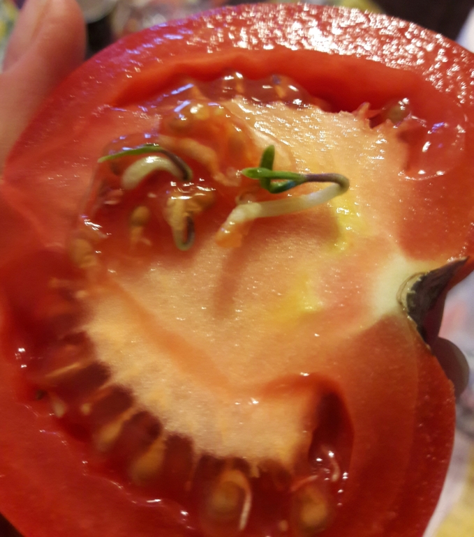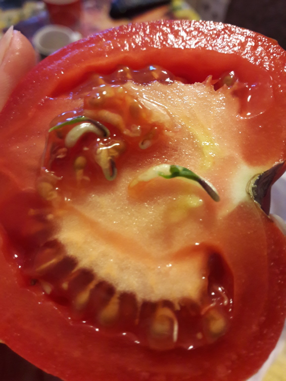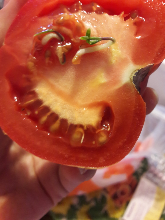 Когда разрезала, думала испорчен, а потом смотрю, а он с росточками! Надеюсь это добрый знак!