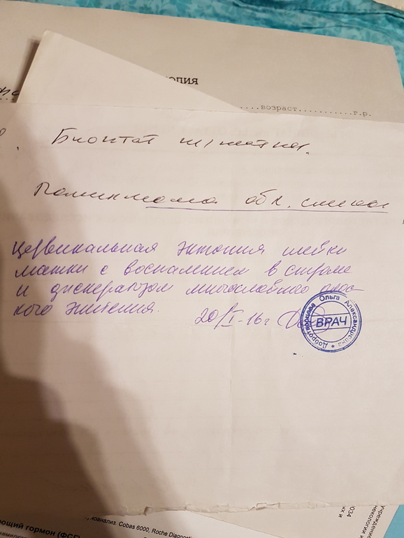 цервикальная эктопия шейки матки с воспалением в строме и дискератозом многослойного плоского эпителия
