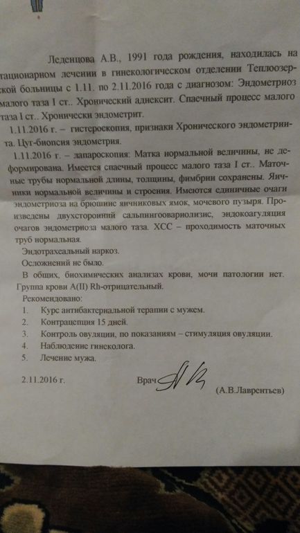 Результат гистеры и лапары