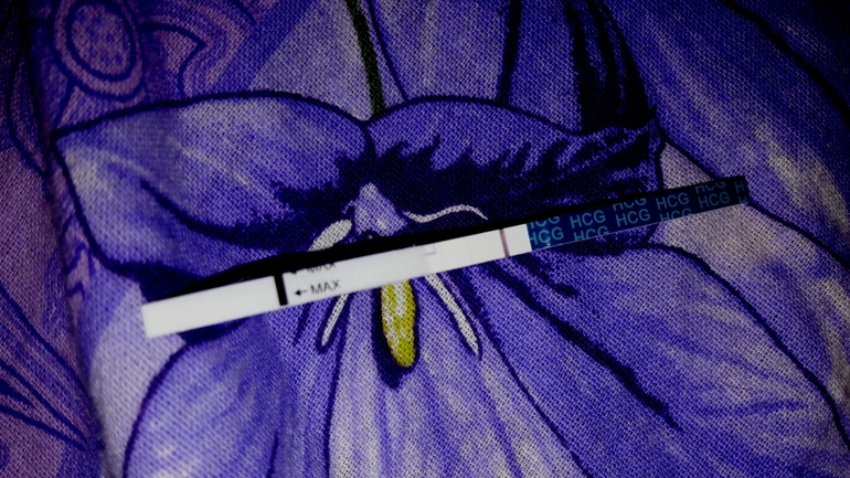 Тест номер 1 (делала до задержки за 3 дня ,полоску было практически не видно(если только пристально смотреть)