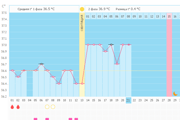 А я свой первый график 10лет назад, вела в тетрадке))) Только она не сохранилась, помню только что после О поднялась до 37 и не падала... Ровненький был)))