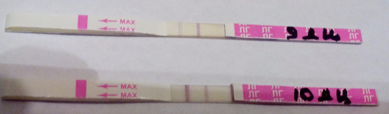 Овуляция( тесты на овуляцию)Сегодня 11 день цикла. Вчера были самые яркие полосочки. Обчихайте меня, девочки беременяшки, пожалуйста. 3 года не получается.
