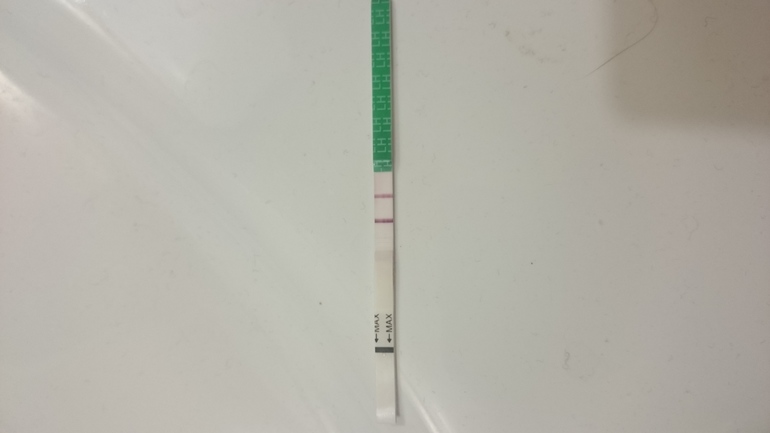 Коллега! :) у меня 5го был 30дц и тоже такая история :) полоска была аж черно-бордовой. На фото уже не так видно. Теперь побледнела :) тоде цикл непойми какой, но надеюсь это была запоздавшая по срокам овуляция, а муж был отловлен и совращен :)