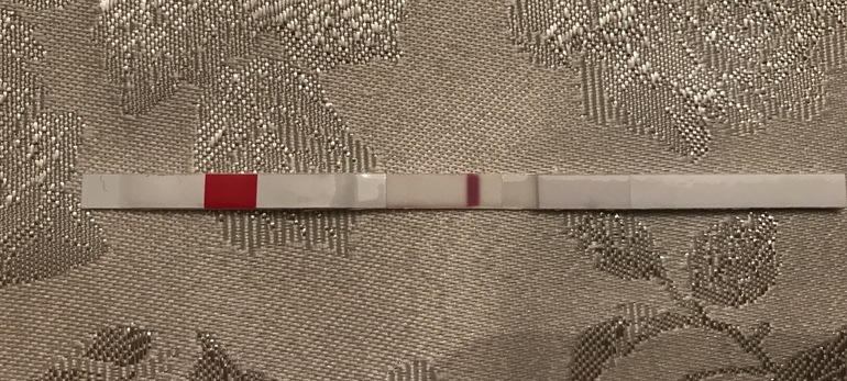 Мне такой тест в небеременный цикл показал полосочку поярче вашей...при том что тесты других фирм были пустые ,попробуйте сделать другой тест