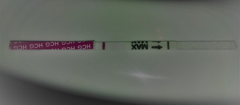 сделала в тот же день вечером еще тест ничего не показал. но почему-то не выкинула, сегодня спустя 2 дня решила еще раз поглядеть- ничего не видно. просто на автомате сфоткала, а там странная полоска!? но думаю, через 2 ведь не считается?))