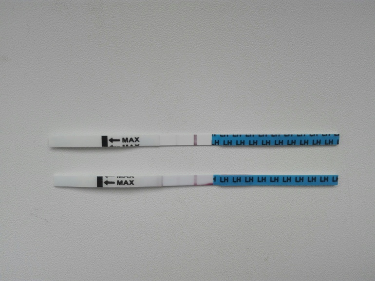 Овуляция( тесты на овуляцию)Привет девочки! Первый цикл решила попробовать тесты на О, после ОК последние циклы 28-31-30-32 дня. Так вот сделала тест на 12дц(верхний тест) полоска бледная, решила на 13 дц не делать, сегодня 14дц сделала тест(нижний) а полоска еще бледнее! И вообще контрольная полоска сама по себе светлая какая то на нижнем. Нижний тест мокрый, высохнет думаю вообще почти не видно будет. Так у меня вопрос, мог ли быть тест // вчера?? Прошляпила что ли?? По выделениям и бт думаю она вот вот на подходе. Или рано еще...в том цикле на 17-18дц Была