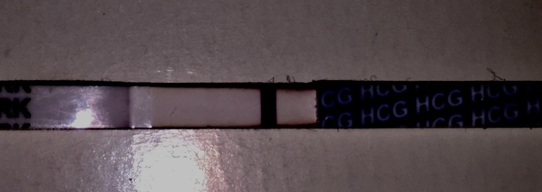 Может просто не удачное фото. Я на своем тесте полусочку увидела только когда уже понесла его выбрасывать, до этого ее вообще не было, а потом на дневном свете чуть чуть что-то проявилось. Я потом еще штук 10 их купила, всё переделывала )). И даже когда через 2-3 дня ее стало видно уже четко, всё равно не поверила, пошла кровь сдала :).