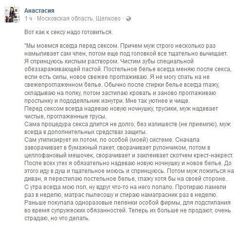 Рыдаю После таких приготовлений и секса-то не захочется!