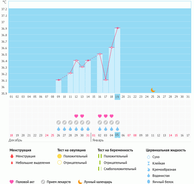 сегодня поднялась температура 36.9 но я в сомнение(((девченки пишут может быть что О была 10-11 ДЦ что по бт не показывает так как у меня цикл короткий от 21-22 до 24(((дай бог что М не пришли...а если придут придется в следующий цикл мерить и ловить ))Муж с меня не слезает эти дни в верху мой график новый я сохранила посмотри)))у тебя как делишки?
