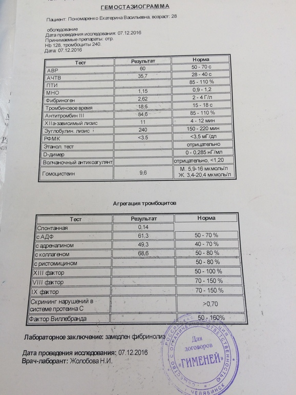 тромбиновое время вышло за нормы, но тут мог стресс сыграть, так как фибриноген в норме.