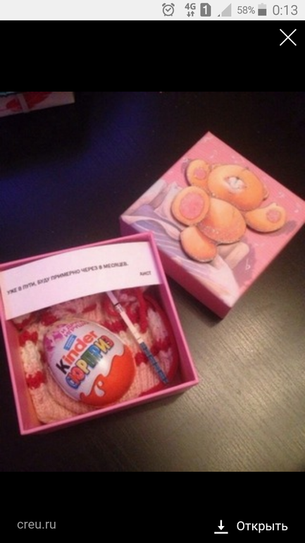 Я оформляла коробочку-сюрприз. Так выпало что о беременности узнала 23 августа, а 25 была годовщина свадьбы, так что коробочка-сюрприз были очень кстати)