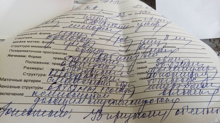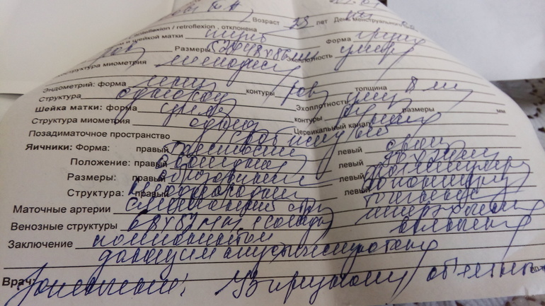 Какие то одиночные слова разбираются((((целиком связно прочитать сложно ((( хорошо к меня у гинеколога все напечатано.она только подчеркивает