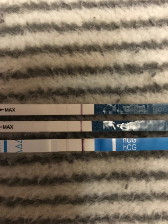 Девочки, кажется ярче тест стал?.. вверху самый первый в первый день задержи, посередине - 3 дня задержки, и вот сегодня 4 дня - самый нижний тест, ещё самый дешевый из всех. Первые два - эвитесты. Завтра с утра буду сдавать повторно ХГЧ. Вчера сдала - результат 21,3...