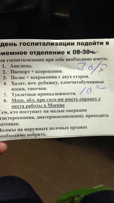 Питьевая вода, лучше взять бутылки с "соской", т.к. пить придется лежа(очень пить хочется после операции, но много нельзя, по глотку каждые 15-20 минут) поставьте сразу на тумбочку, прокладки (я брала и ежедневные и обычные), влажные салфетки, средства гигиены (зубная щетка, зубная паста, шампунь, крем, гигиеническая помада), полотенце, зарядное устройство, туалетная бумага. Возьмите яблоко или еще какой фрукт, на следующий день после операции, как найдете)))