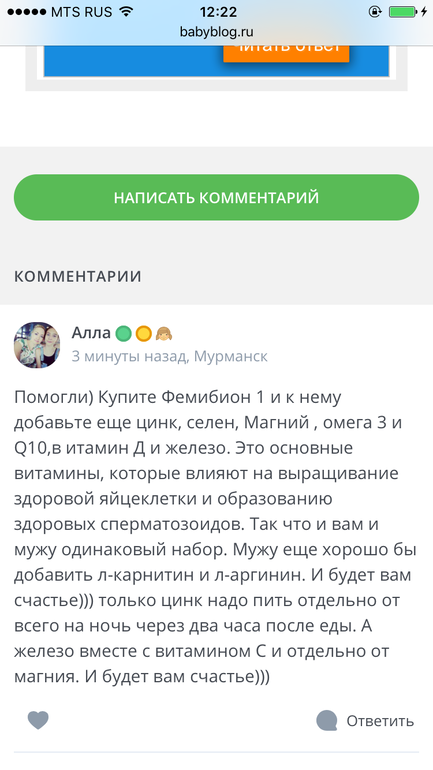 Я,кстати,начала тогда пить витамины фемибион 1 пропила цикл и забеременела,читала до этого одна женщина писала,что эти витамины помогают вырастить здоровые яйцеклетки)