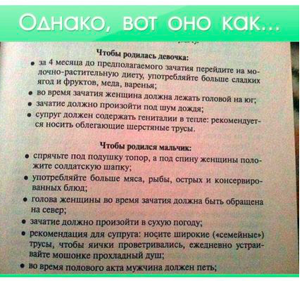 Мы тут с мужем читали "методы", чтобы девочка получилась, ой как мы смеялись) В общем я вяжу трусы и ем фрукты!))