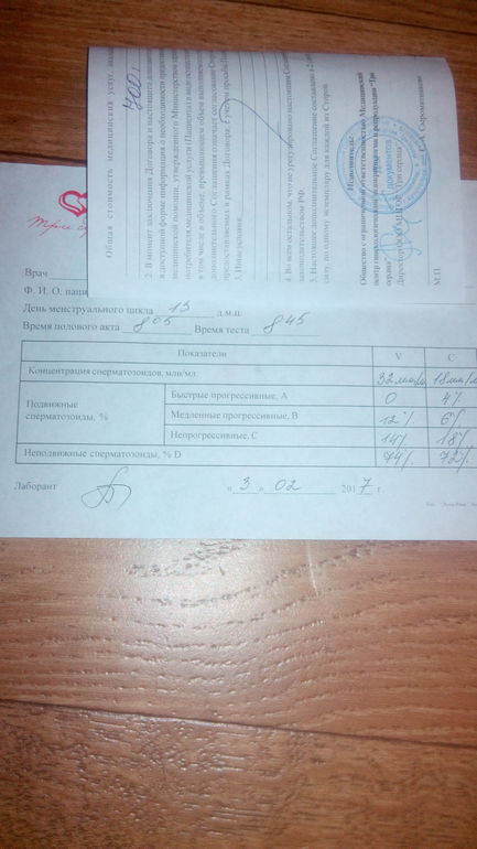 Еще важный момент: время ПА - 8.05, а тест провели через 40 минут. Быстро слишком. Возможно, часть спермы вытекла.