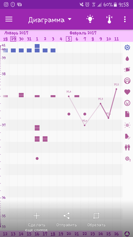 Это снова я))) извиняюсь))) я стала продолжать отслеживать и вносить данные в график и вот что получилось. Темп прыгает от 37 до 37.5. О была 31 или 01.02