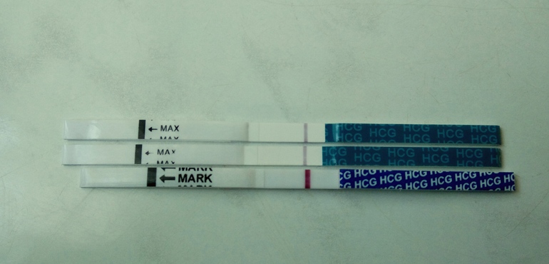 Не на всех реагентов быть не может!!, полосочка есть, но слабенькая!!! Динанику хорошо отслеживать на тестах одной фирмы! И для успокоения сдать бы хгч! Удачи Вам!)))