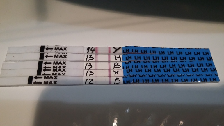 Сегодня 14 день цикла, вчера днем болел яичник (к сожалению он у меня один), прям как перед месячными, тянуло, крутило, пришла домой с работы и сделала тест и тут они славные 2 штучки) (13В на фото)