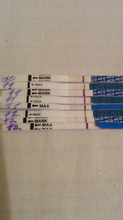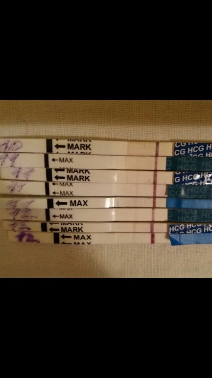 Ттест делается утром и одной и тойжэ фирмы а не 8разных за два дня вы так себе только нервы трепите.у вас всё замечательно растите и здоровья вам!))))