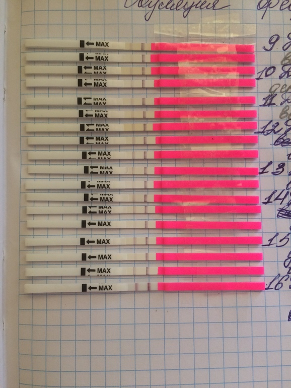 Тестики цветом красивые,но думаю овуляция будет через дня 2,а вообще если вы так пытаетесь отследить овуляцию,лучше на фолликулометрию ходить
