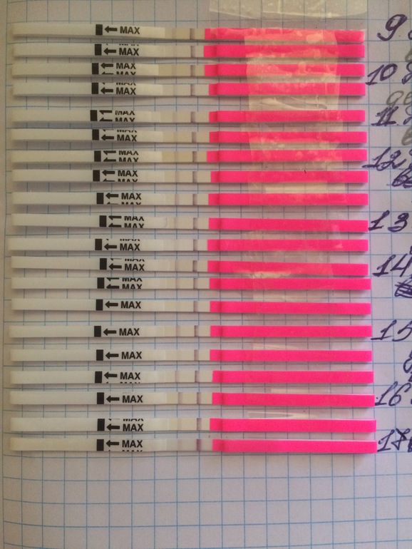 Овуляция( тесты на овуляцию)Вчера был 16Дц полоска вроде была самая яркая утром.Вечером и сегодня утром бледнее.