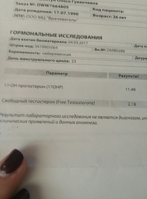 олеся в Зачатие 9 лет пришли гормоны 2 фазы... Анализы Девочки кто разбирается посмотрите, все ли в норме? К врачу только через неделю. Посмотрите еще 20 записей на эту тему Отменить Ответить Ирина У каждой лаборатории свои нормы. Если в них укладываетесь, то все ок. Фото без норм 10.03.2017 Ответить олеся что то не подумала сфоткать нормы,вообще по нормам вроде все укладывается 11.03.2017 Ответить Аурика Не видно норм. 10.03.2017 Ответить Как уговорить мужа на спермограмму Прогестерон Чаты Беременных Выберите чат: Январята-2026 Февралята-2026 Мартята-2026 Апрелята-2026 Майчата-2026 Июнята-2026 Июлята-2026 Августята-2026