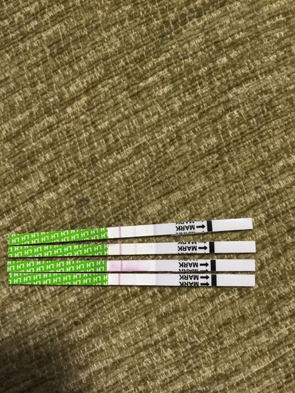 Первый куда то посеяла, сверху вниз нужно смотреть... вот сейчас присмотрелась и на последнем (сегодняшнем) увидела опять бледную полоску... может у меня овуляция позже будет...