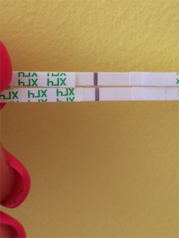 А вот и эвики ,верх утро (совсем блеклый ,в реальности поосиатривается )низ сейчас ,говорю же моча насыщенней становится,не знаю плохо это или хорошо ,но однозначно полоска розовенькая и ярче