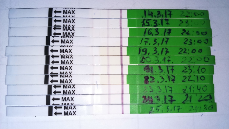 Тесты на овуляцию рекомендуют делать с 10:00 до 20:00, может поздно по времени дня делали?