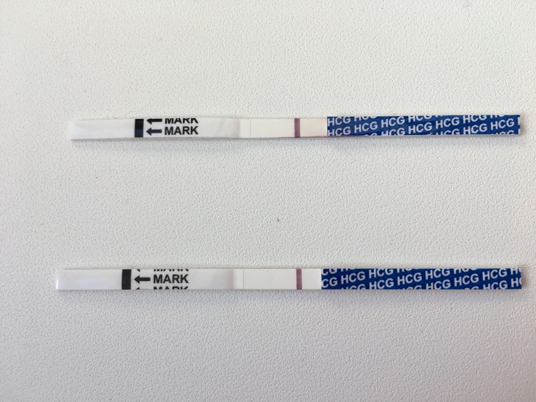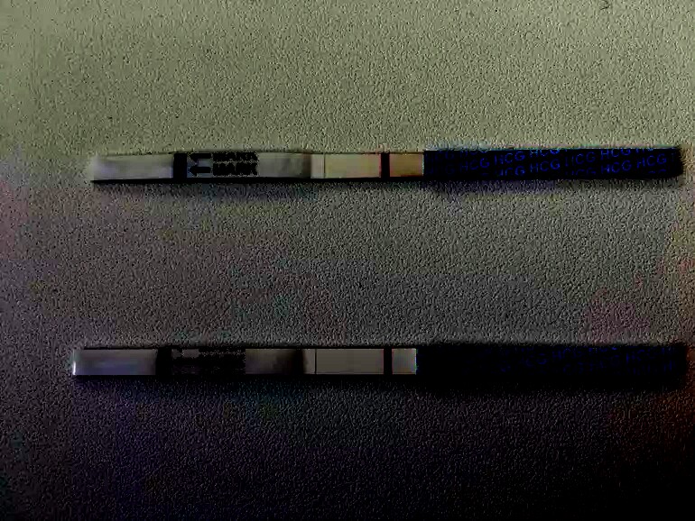 Я на двух тестах вижу вторую полоску, но реагент это или нет не ясно. Повторите завтра ещё раз. Удачи!