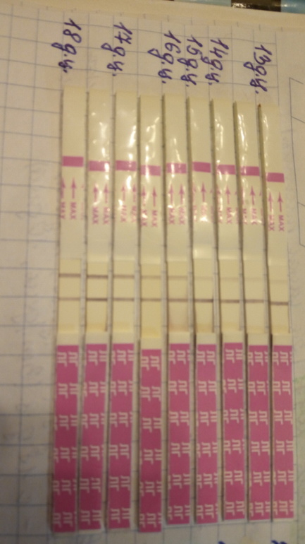 Приветик! Про признаки у всех индивидуально. А вот про тесты "Я родился" скажу от себя... В этом цикле начала их делать с 10го дня цикла, второй полоски вообще не было. Через несколько дней купила и начала делать параллельно другие тесты (Момент чуда), так вот при жирнючих несомненный полосках на этих тестах Я родился показали еле-еле заметную вторую..... Хорошо, что вовремя купила другие, иначе так бы и не знала, что О.была. Вот фото, делала в одной емкости))