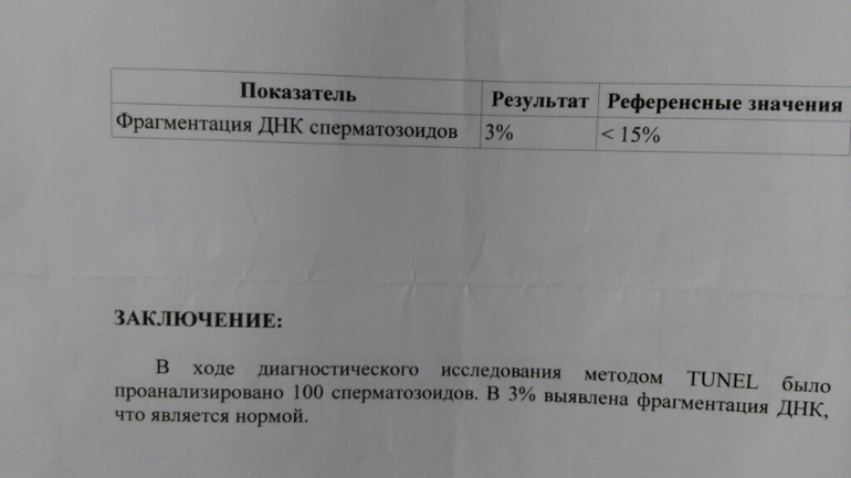 Также в этот раз по рекомендации андролога сдали фрагментацию ДНК (результат норм):