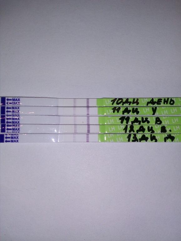 Привет всем.Я не поняла судя по тестам у меня в 12 дц была овуляция?Подскажите пожалуйста)Сегодня 13 дц,полоска бледнее .Выше картинка прошлого цикла.