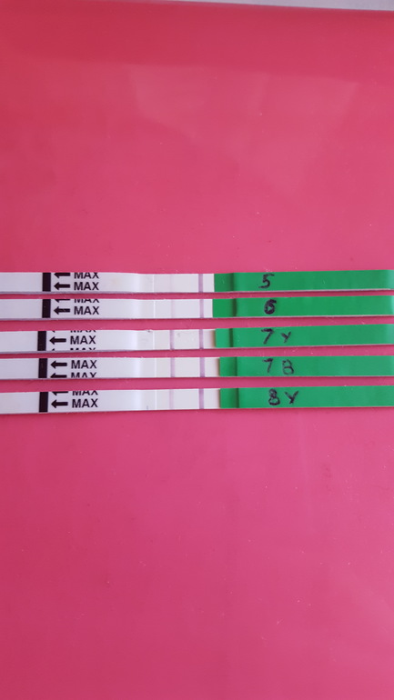 У меня цифровой тест улыбнулся вообще на 6 д.ц. А 7 д.ц. полоски одинаковые были с тестовой. Тут не видно, наверное.