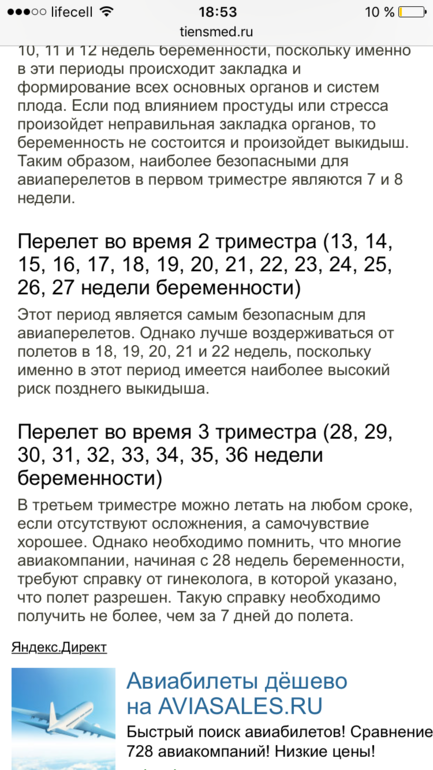 Перелёт на 7й неделе беременности