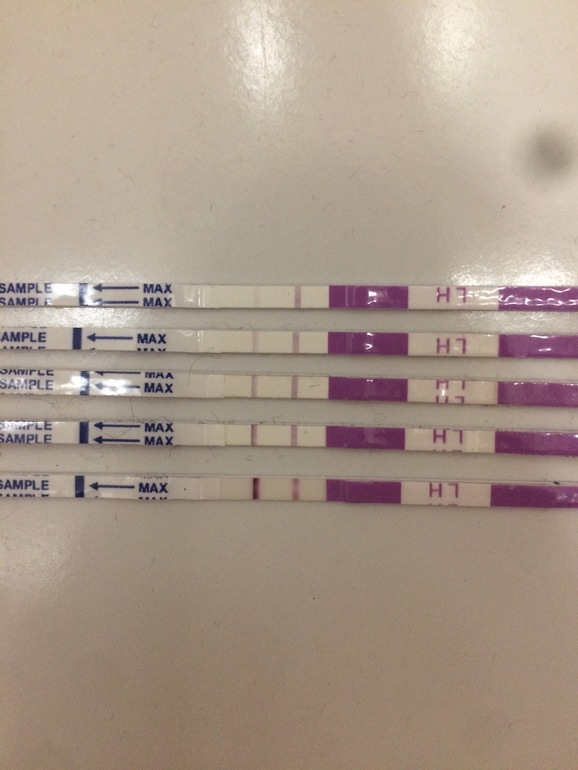 Овуляция( тесты на овуляцию)Вообщем, по полоскам можно сказать, что классика жанра. Но! Положительным ведь считается, когда полоски одинаковые по яркости. Под кат ... Я так и думала, что вчера овуляция, у меня в день положительных тестов и овуляция. С мужем старались. Сделала тесты сегодня...думала полоска бледнее будет. Ага, она ещё ярче стала. Мужа, конечно, подловлю. Но он вечером будет. Успеем??? Или уже вчера успели??? Вот тесты: с 9 дня цикла