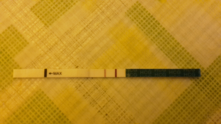 Ждем дня Х (Признаки беременности / Тесты)Девочки, привет. Начну с того, что 4 года у нас не получается нормально ЗБ.Как я писала в предыдущих постах, год назад у меня была ВБ, в результате которой была удалена правая труба. 29 февраля этого года мне сделали лапару, убирали спайки с левой оставшейся трубы. Врач сказала сразу приступать к планированию. Последние М были 25 марта, так же в этот цикл была стимуляция О. Узи во время стимуляции показало доминирующие фоликулы в правом яичнике. Что мне в этом цикле надеяться не на что и будем пробовать в следующем. Я отпустила эту ситуацию и перестала думать в этом месяце о Б. Сегодня второй день задержки и я решила от балды сделать тест, валялся последний в аптечке. И вот, что я увидела: