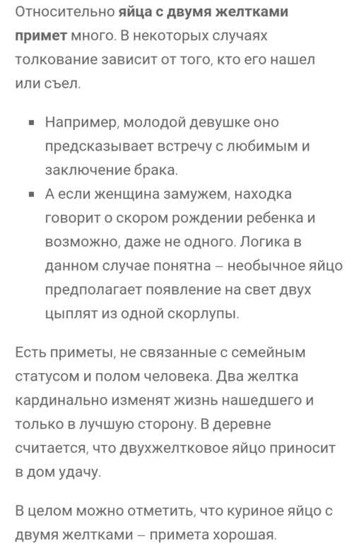 мне на днях тоже яйчко двойное попалось,впервые в жизни, так приятно было,верим и ждем наших цыплят 😍🍼🍼🙏