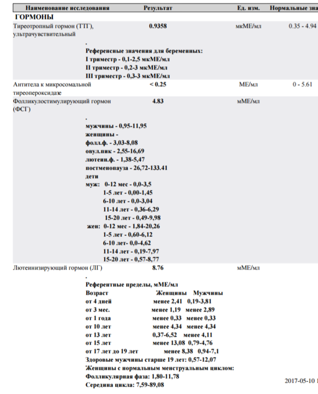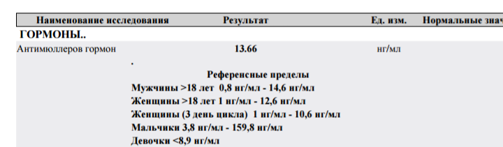 Я прошу прощения, но по анализам у вас в норме только Ттг и Пролактин... Первая фаза это фаза эстрадиола и ФСГ, 72 эстрадиол это мало... ФСГ должно быть больше Лг, у вас увы наоборот... Завышен 17прогестерон значит надо бы ещё сдать картизол, тестестерон и дгаэ если они в норме, значит норма)) а заключение вам поставили я так понимаю по результату АМГ.