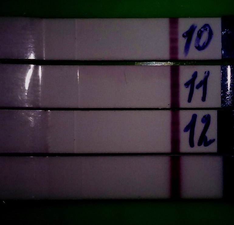 Точнее что-то выдал мне вчера (11дпо) утром, но еле уловимо, может и реагент, я плохо понимаю... А сегодня уже пусто (12дпо) - правда делала на "сотый попис" ночью и в обед - это два нижних теста. ХГЧ сдам только 24го, если конечно М не придут. А пока не знаю чем спасаться - состояние жуткое, нервное, беспокойное... Если это ПМС всё-таки - то это новые жестокие симптомы, провались они пропадом.