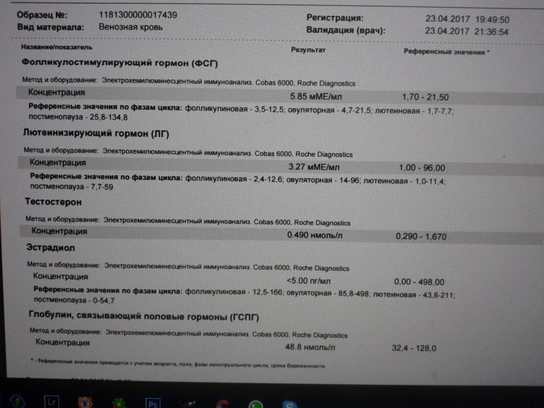 сдавала. вот в последнем цикле низкий эстрадиол (меньше 5), прогик не смогла сдать так как не поняла когда была овул и была ли она вообще. До этого когда сдавала прогик (по совету врача на 22 дц) - был низкий (соответствовал лютеиновой фазе) - но возможно тогда овул вообще не было или опять таки была поздняя. Врачи ни слова не говорят что надо отталкиваться от овул.