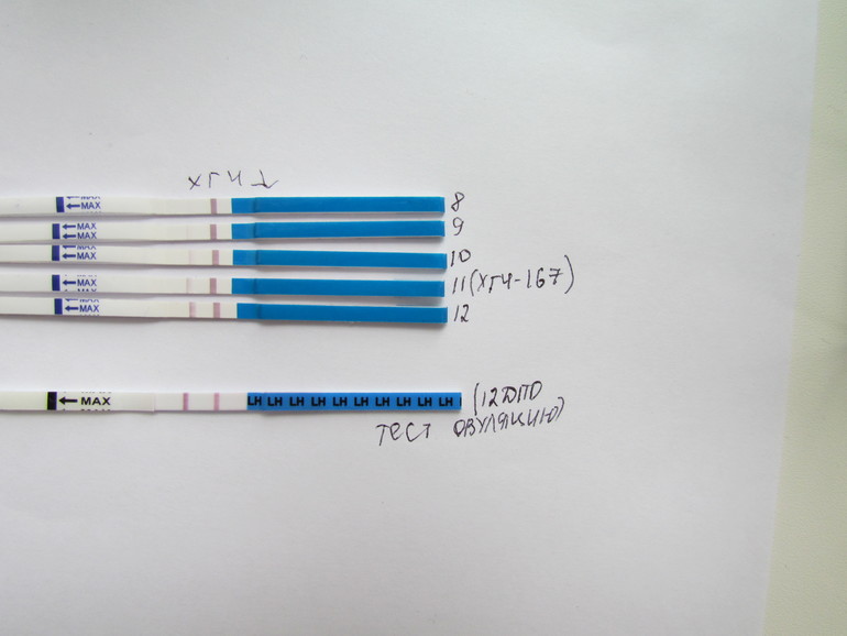 У всех по разному: сами понимаете, что прикрепление идет от 2 до 12 дней, или как-то так) вот мои тесты а при этом тесты другой фирмы вообще показывали еле-еле видную полосочку)