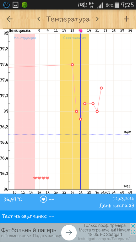 Базальная температура, ТТ, графики БТТакая ситуация.раньше не задумывалась о БТ.а тут подруга посоветовала начать ее измерять чтоб выявить первый признак беременности. Подскажите это нормально происходят такие скачки и чего ждать?до М еще неделя...