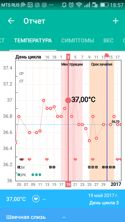 Меряю БТ 3 цикл, но каждый раз простужаюсь и у меня везде 37-37,5. В этом цикле удалось вроде померять нормальные цифры, но выше 37 у меня только в М. Т.е. 5 дней 36,8-37,1, потом до 10 д.ц. то 36,5, то 36,45, на 10 дц 36,8, а с 14 дц я начала утрожестан в таблетках 2 р в день по 100мг, и бт не растёт. Уже 5 дней 36,7, ни ниже, не выше, меряю в 6:30. Мерила ещё вечером, там лучше 36,9-37,1, в 1 фазе было только 36,7-36,8 вечером. Но утренняя бт не растёт, хотя читала, что от у родестана должны искажаться данные на сколько то, быть выше. В прошлом цикле было 36,8 хотя бы