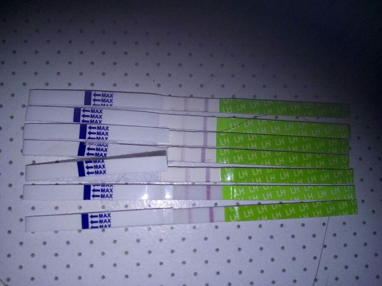 Пока не было, тестовая полоская должна быть хотя бы такого же цвета как и контрольная или ярче. У вас все полоски значительно бледнее, поэтому 100% отрицательный результат. Продолжайте делать тест, может быть в этом месяце у вас поздняя овуляция))