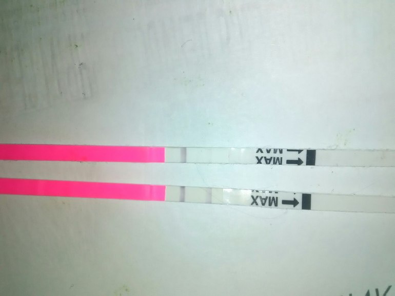 Но сегодняшний тест довольно ярко показал (в сравнеии с вчерашним)... Нашла сейчас давнишние фотки тестов на О, примерно такой у меня он был на 19ДЦ, а вот явно ярче контрольной стало на 21 день.